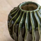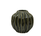 Inspired by the beauty of coral reefs, this captivating vase features flowing, curved ribs brought to life by a rich ink blue or earthy olive glaze. Its organic form and striking finish make it a true statement piece for any interior.