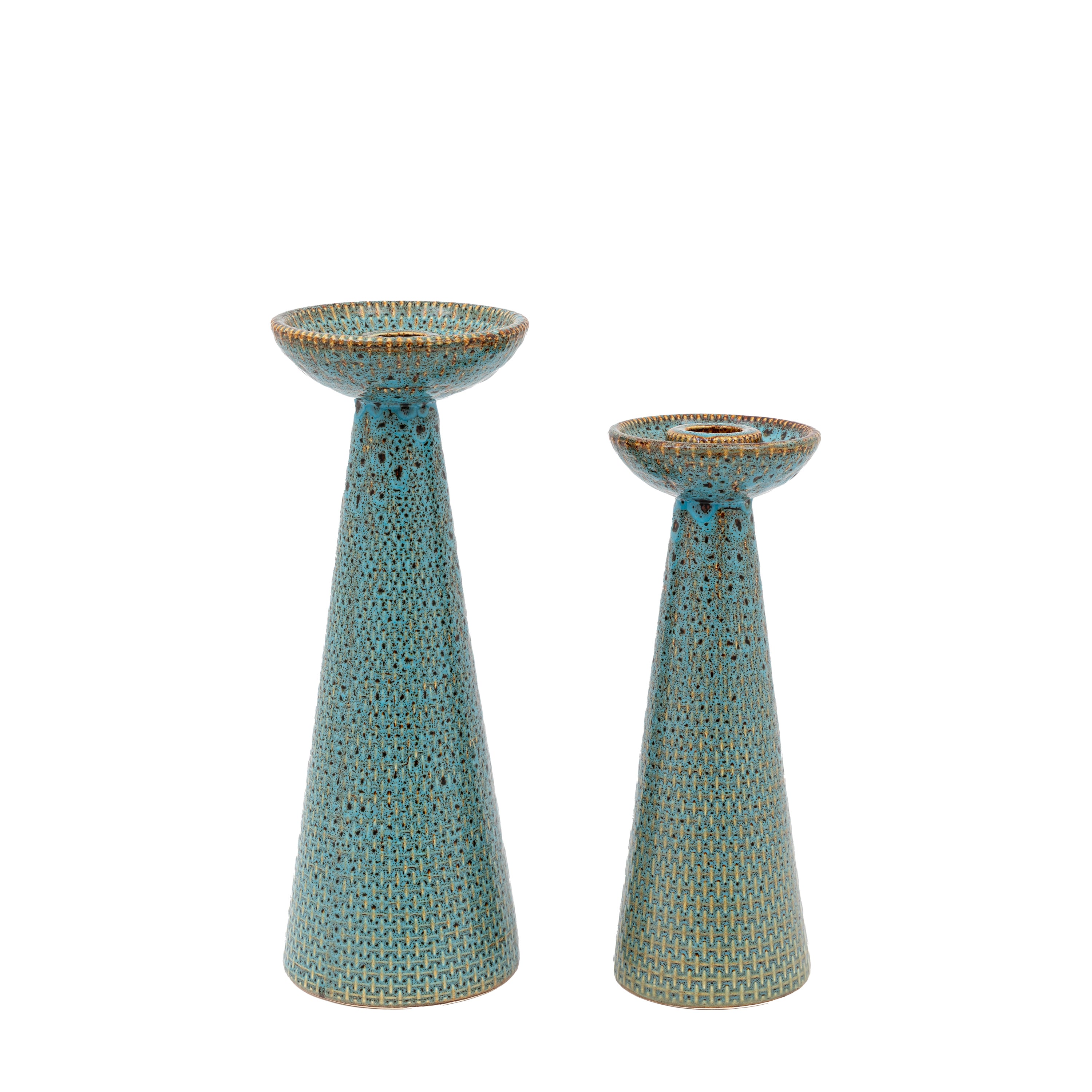 Porto ceramic candlesticks set of two - Teal