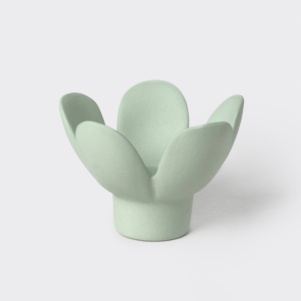 Fresh and refined, the Flower Candle Holder in Eucalyptus green adds a delicate botanical feel to your space. Its soft pastel tone works beautifully with both earthy interiors and spring-summer palettes.