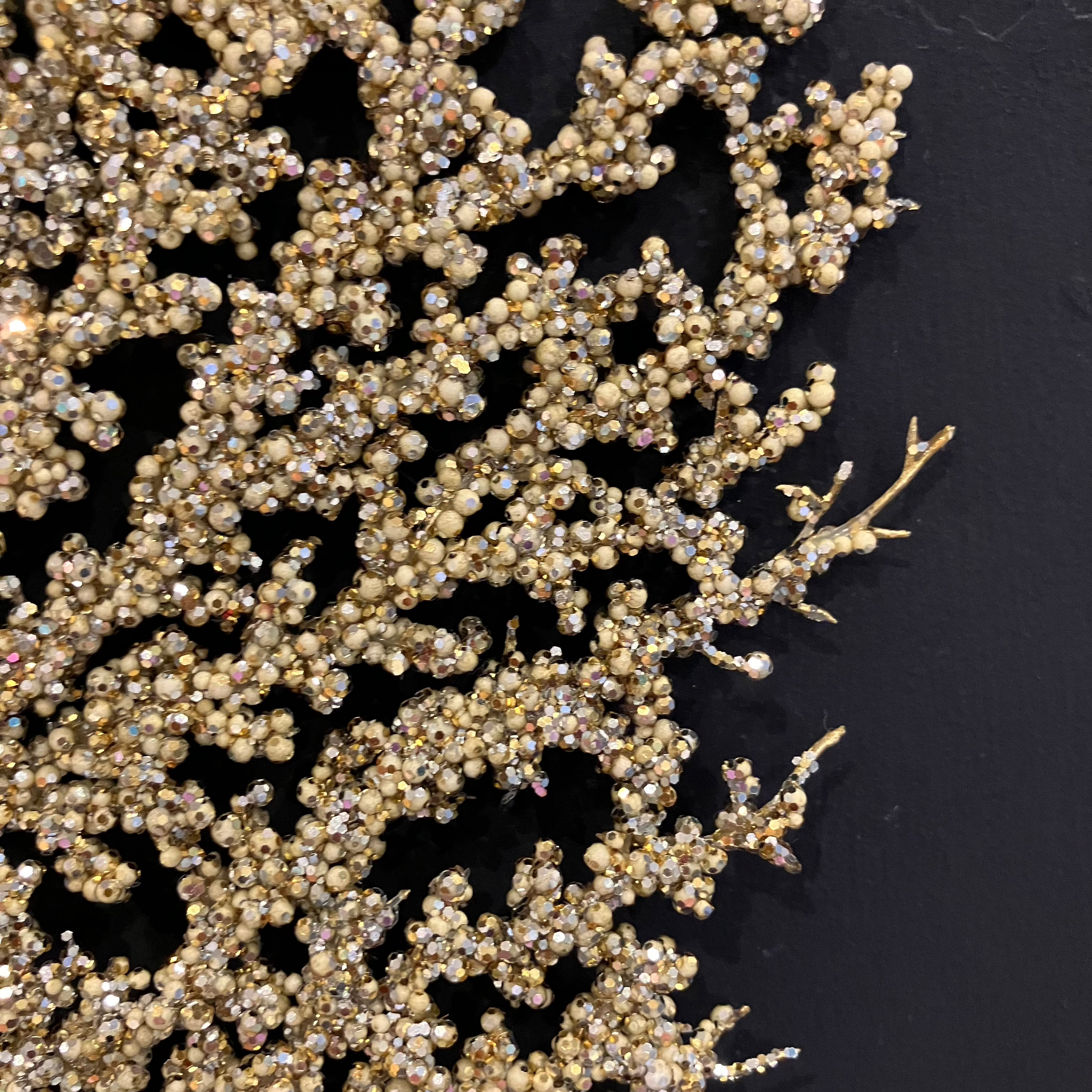 This Champagne Glitter Coral Spray sparkles in your holiday decorations. Its champagne colour, glimmering glitter, and naturally beautiful shape will add a festive twinkle to any room. Perfect for Christmas trees, wreaths, or garlands.