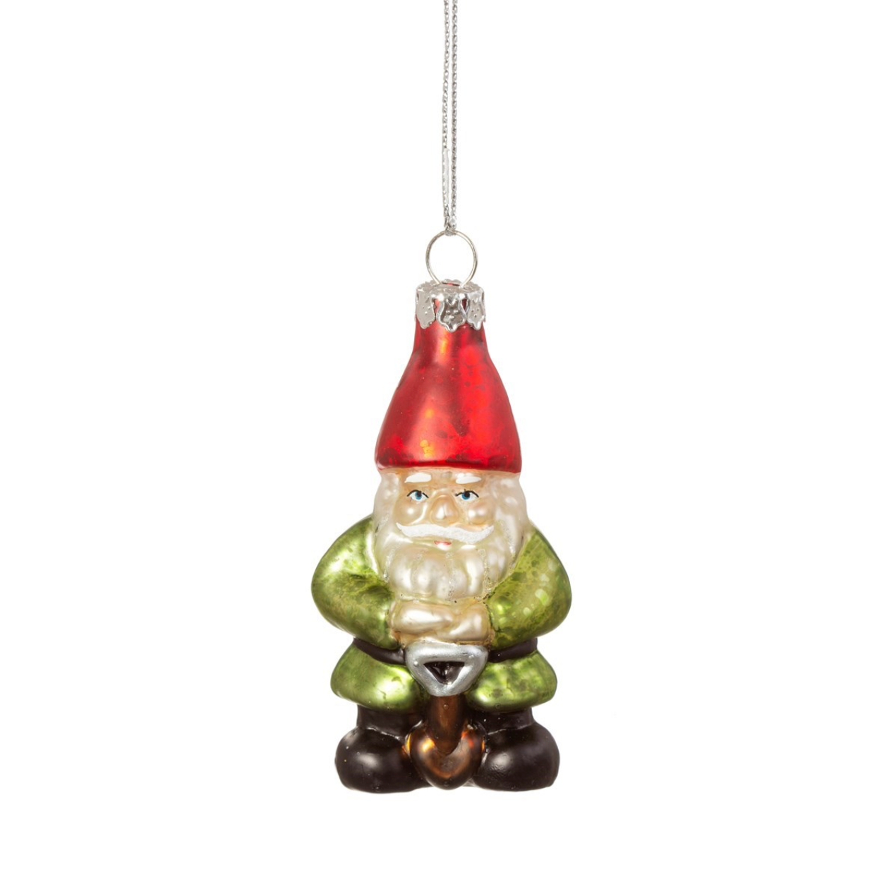 Add some whimsy to your holiday decor with our Garden Gnome Shaped Bauble! Made of glass, this unique ornament features a festive green, red, white, and black colorway. Embrace the "green" of Christmas with this charming addition to your tree.