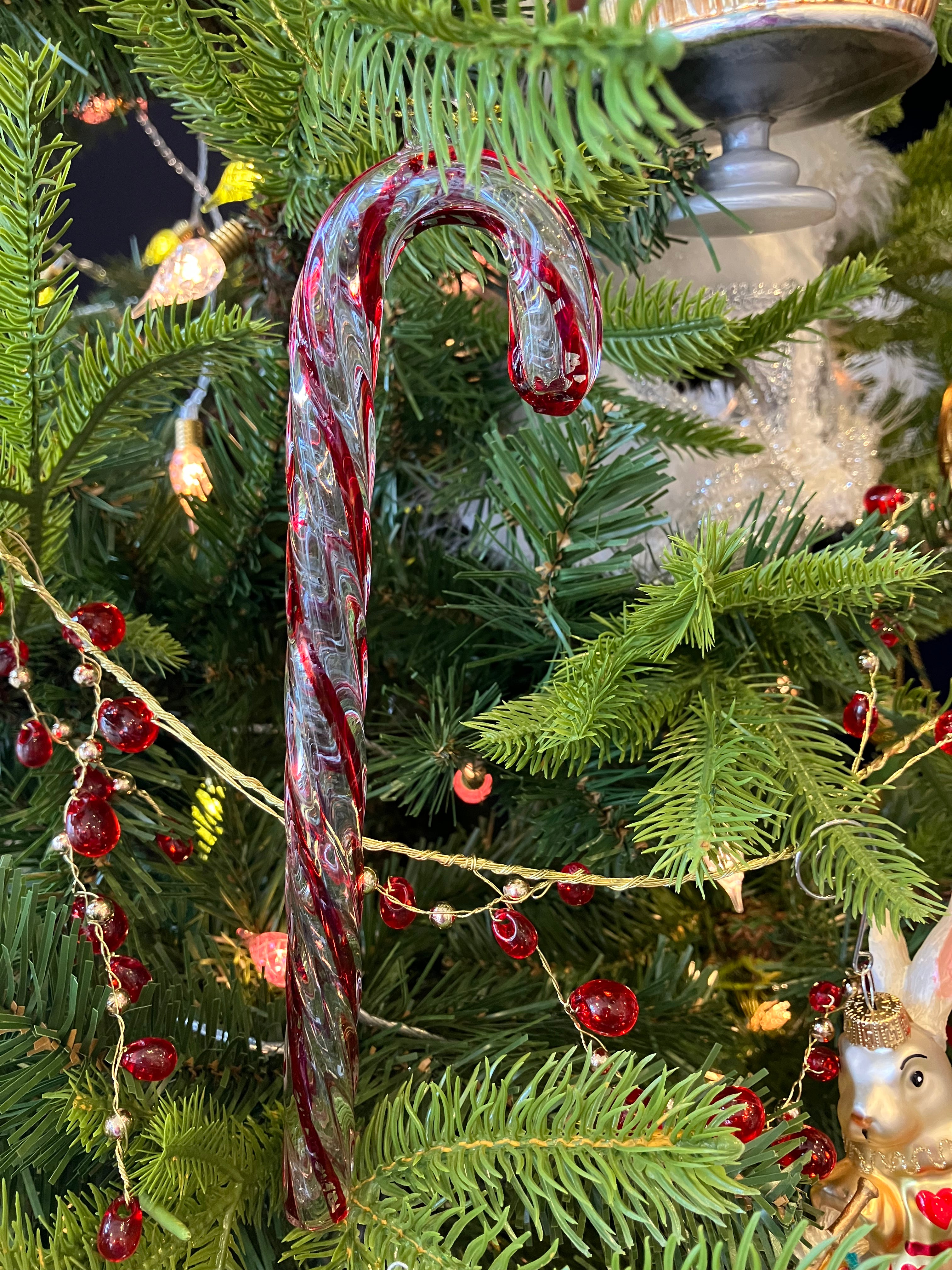 This Red/Clear Glass Candy Cane Decoration is the perfect addition to any holiday decor. It features a festive design of Alice in Wonderland. Crafted from durable glass, it's sure to last for years of enjoyment.