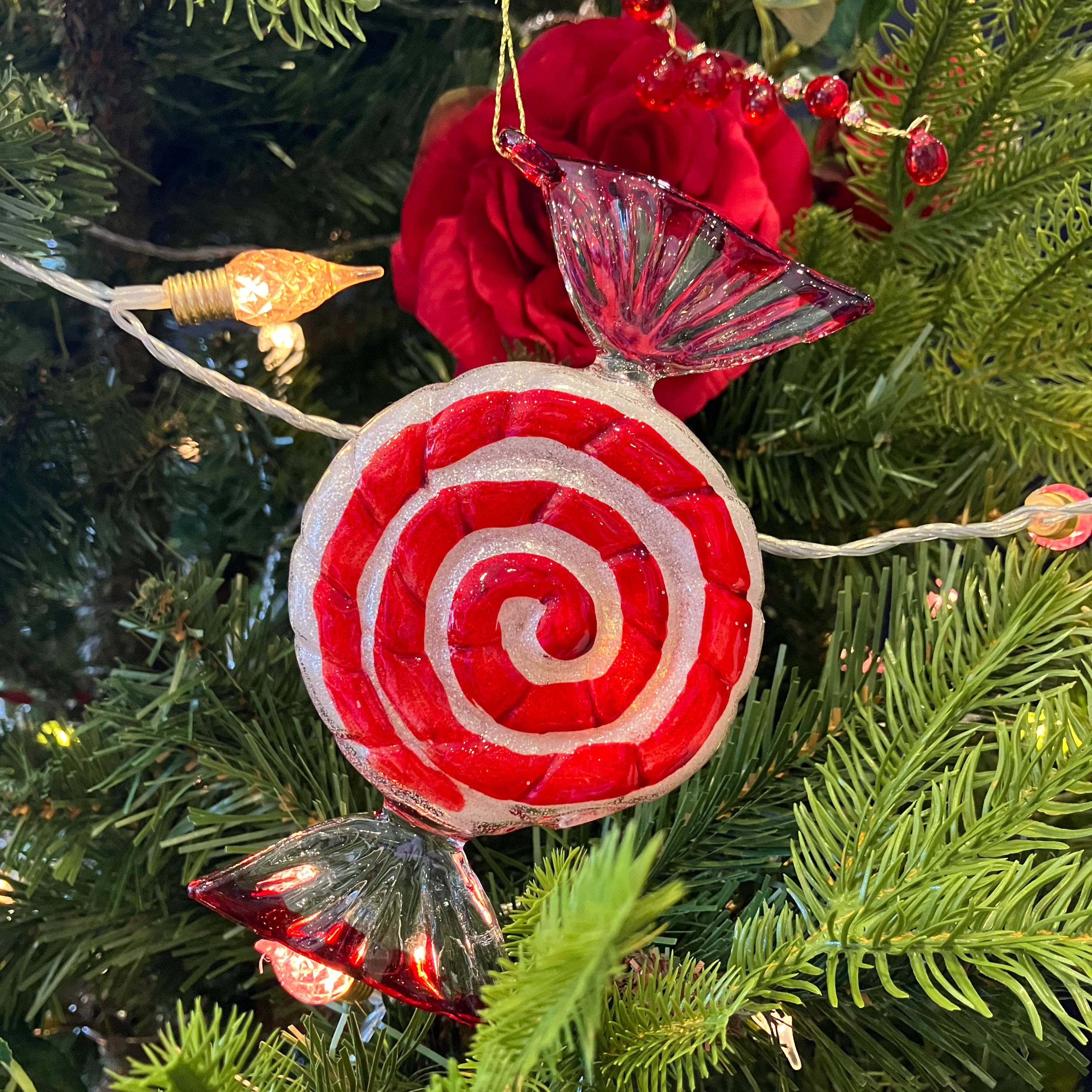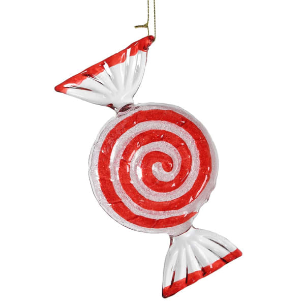 This unique red and white glass candy Christmas decoration will be the perfect addition to your holiday decor. It is intricately designed with a beautiful Alice in Wonderland theme. Perfect for adding a whimsical Alice in Wonderland touch to your Christmas décor.