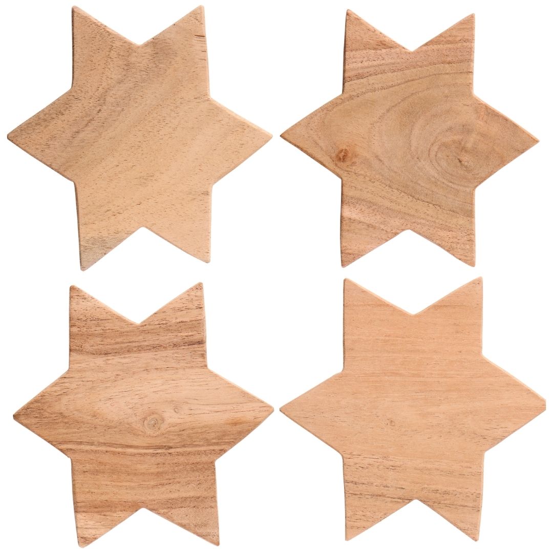This set of four star-shaped wood coasters combines natural beauty with practical functionality. Each coaster protects your surfaces from moisture and heat while adding a subtle festive accent to your home. The wooden design ensures durability and timeless style suitable for everyday use or special occasions.