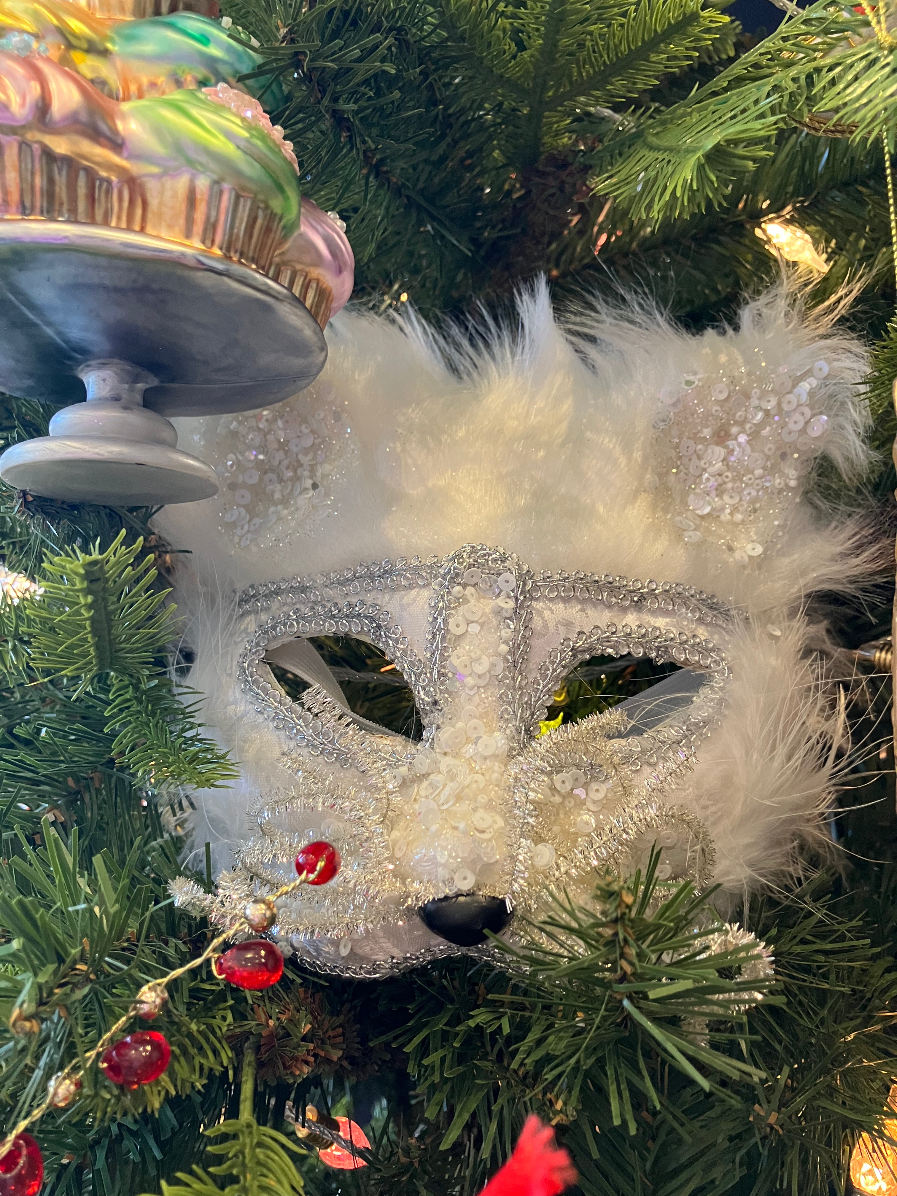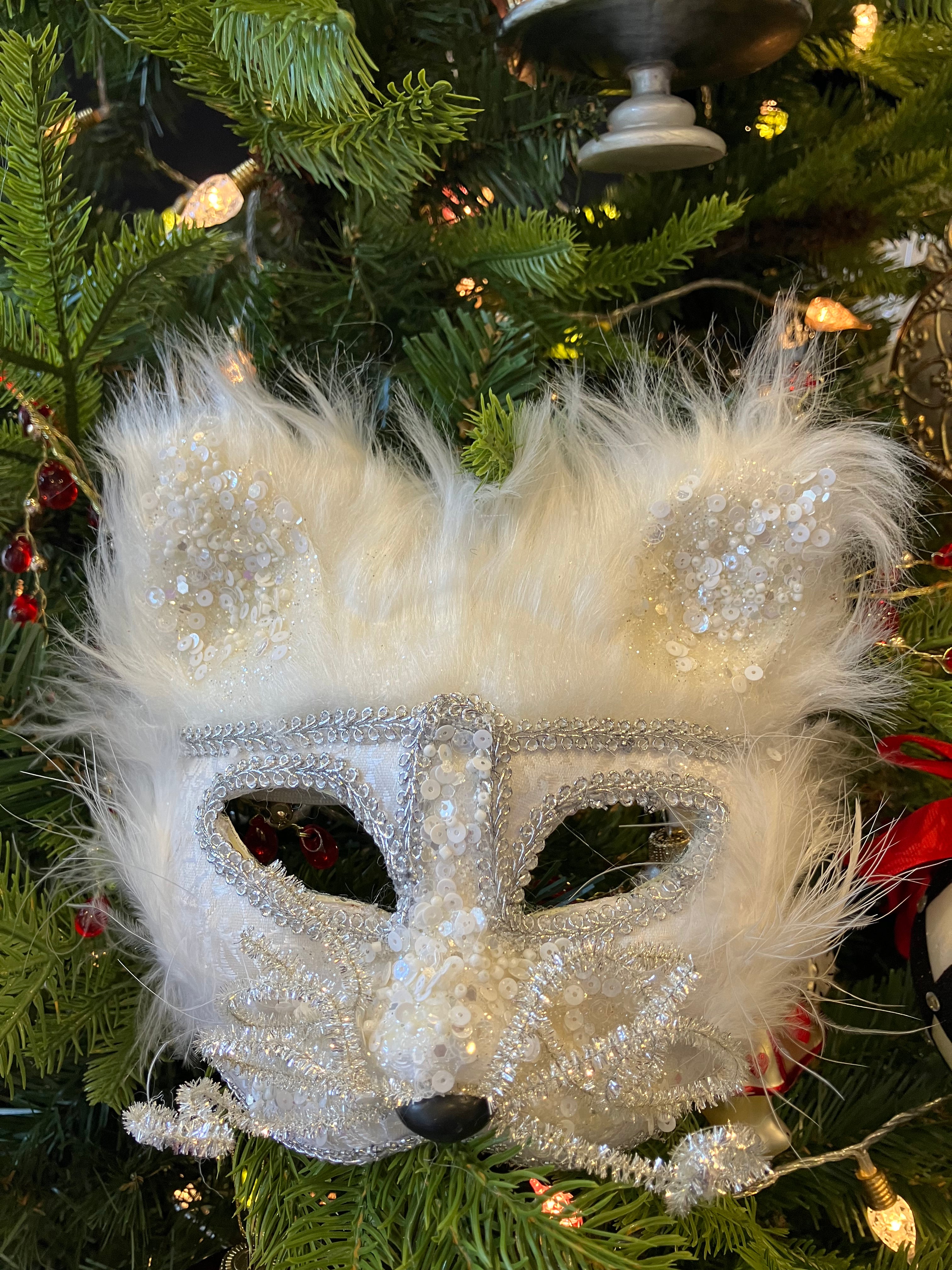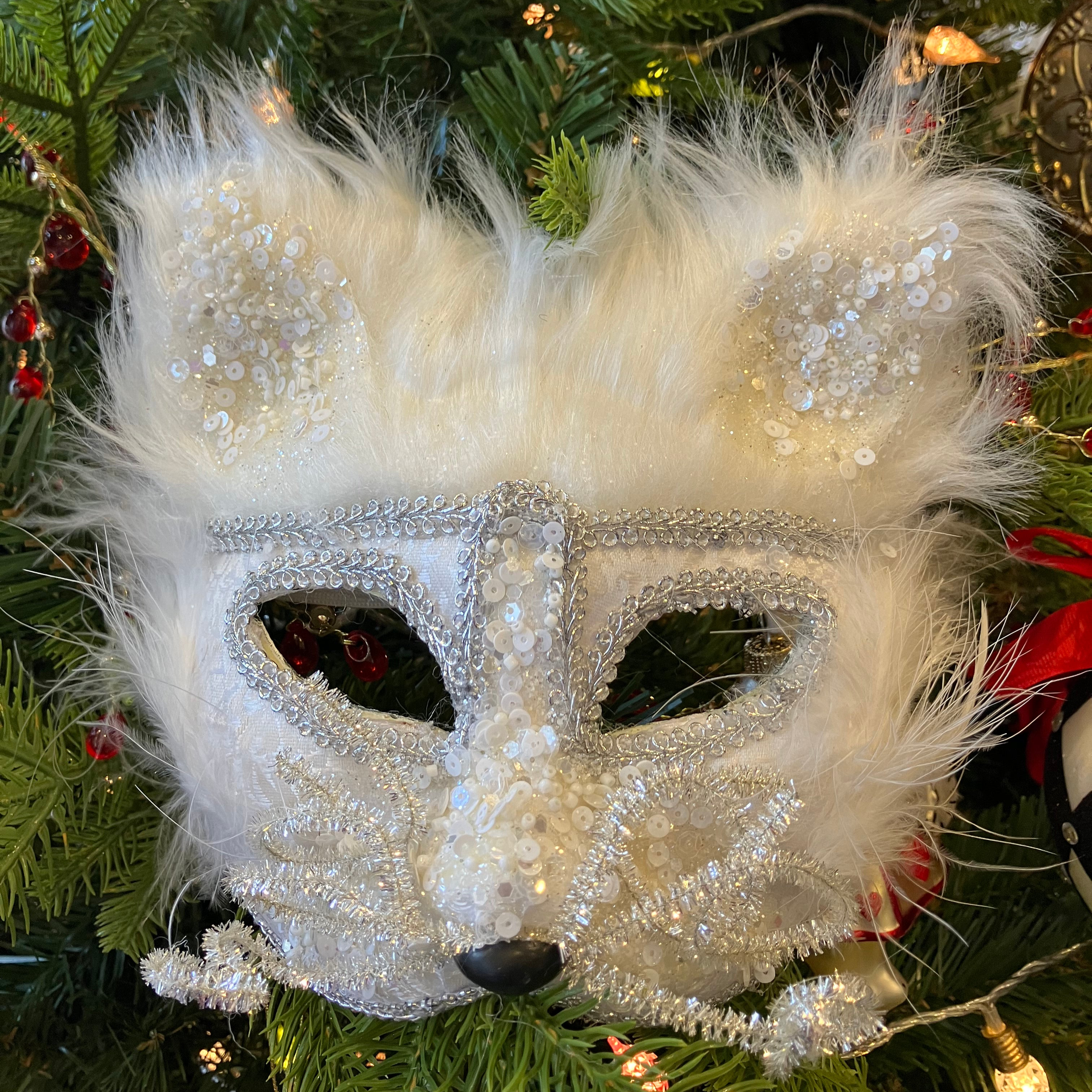 Add a magical touch to your holiday decorations with this White Cat Glitter Mask! This stylish mask features a festive Alice in Wonderland design, perfect for any fan of the classic. The glitter adds an extra sparkle to your holiday decor.