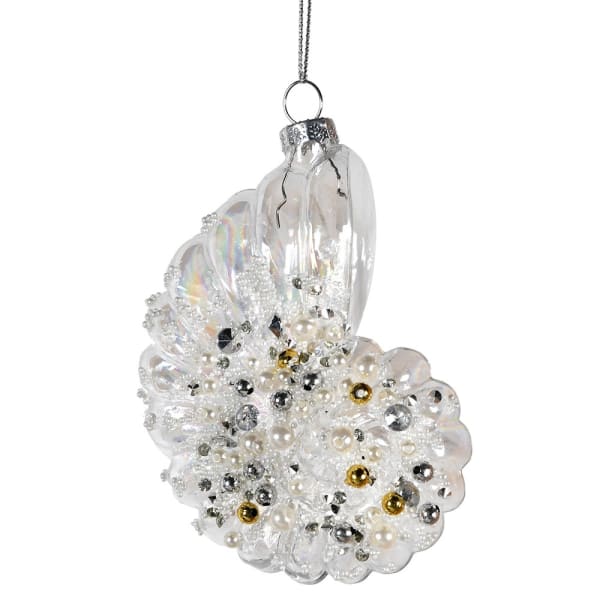 This decorative White and Gold Ammonite Bauble is sure to add a touch of coastal charm to your holiday decor. This high-quality bauble is crafted from the finest materials, for an exquisite and durable decoration that will last for years to come.
