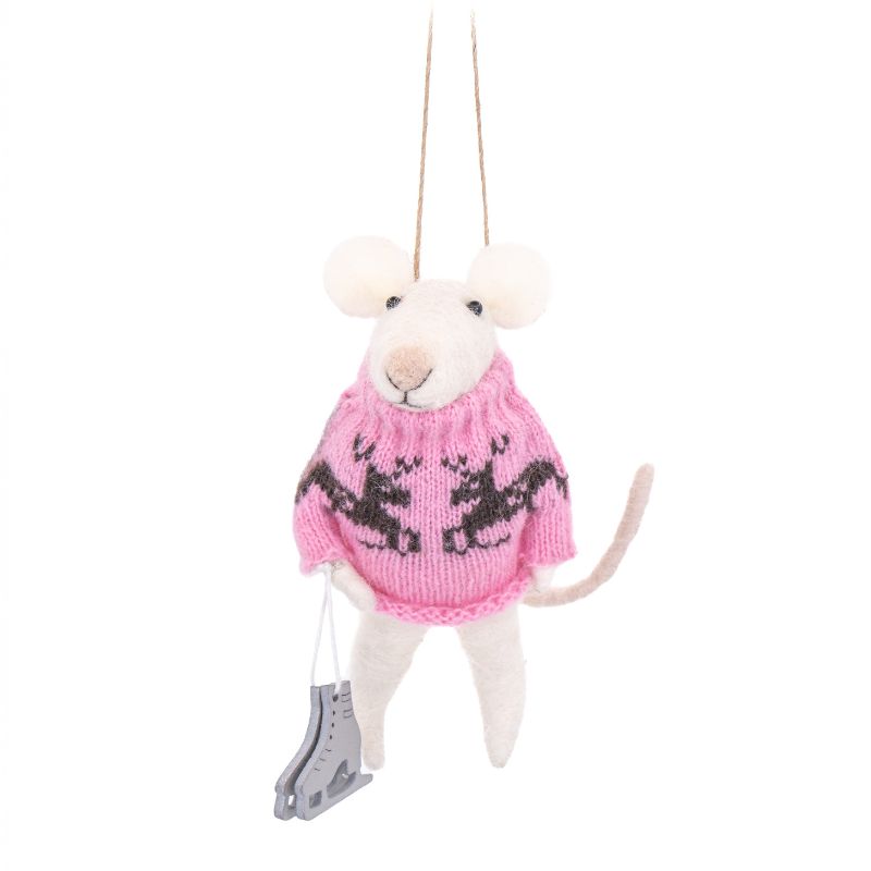 Ice-Skating Mouse in a Jumper Felt Decoration