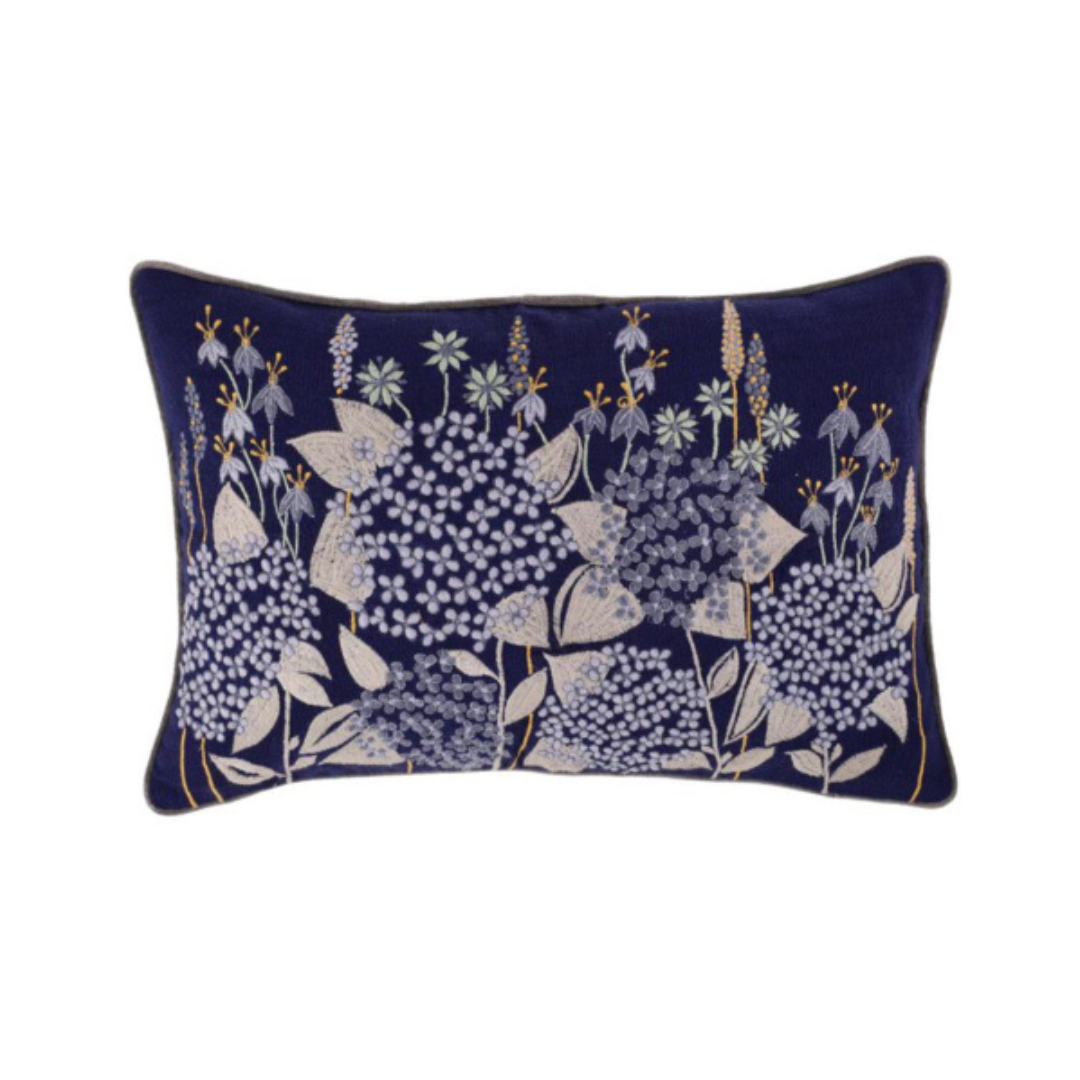 Bloom Velvet Dark Dove Grey Embroidered Cushion - 60 x 40cm
