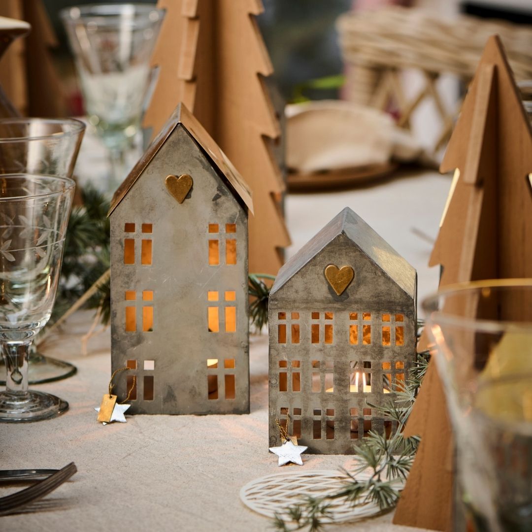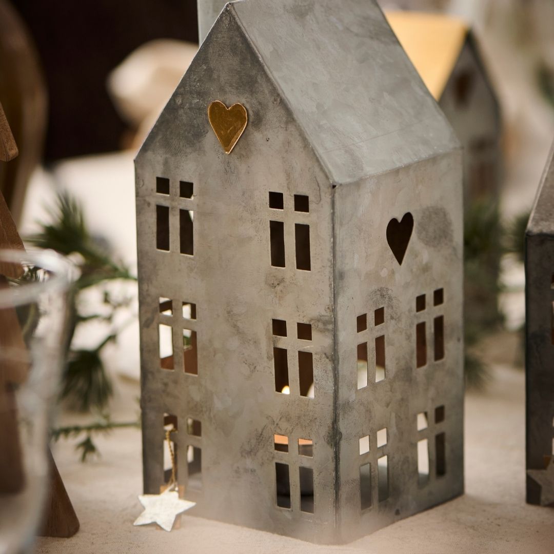 Choose from three beautifully detailed house tealight holders, each with its own distinct design. Crafted from metal with charming cut-out windows and heart details, these pieces create a soft, inviting glow when lit. Ideal for adding warmth and character to your home décor, they look lovely on a mantel, shelf, or as part of a seasonal display. Suitable for indoor or sheltered outdoor use.