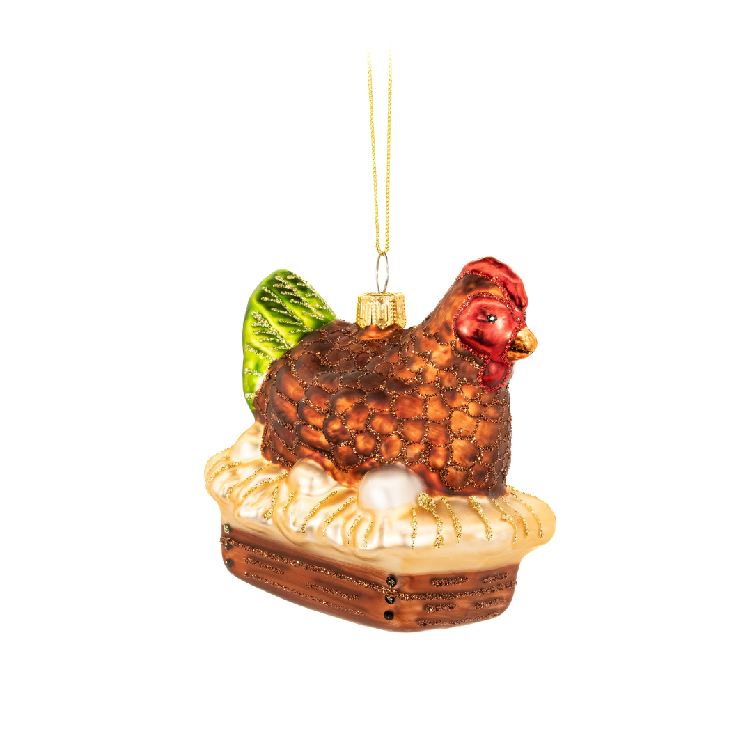 Celebrate farmyard charm with this delightful roosting hen-shaped bauble. Crafted to evoke the warmth of country living, this rustic ornament brings authentic character to your Christmas tree. Ideal for those with a love of rural heritage and traditional aesthetics, it adds genuine personality to your festive display. A charming choice that brings the cosy appeal of farm life to your holiday celebrations.