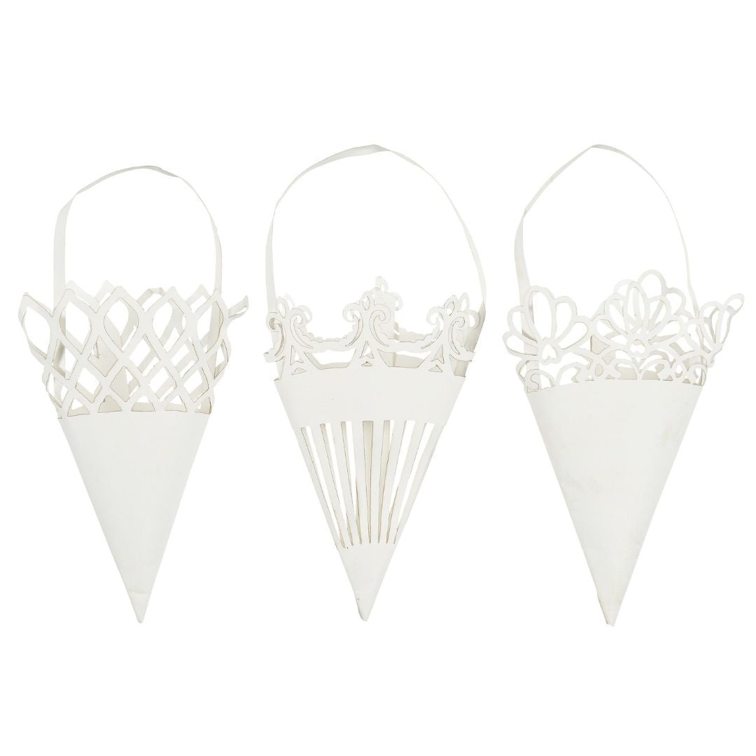 This set includes 12 paper cones in three distinct designs, expertly crafted to bring versatile elegance to your décor or gift presentation. Ideal for holding small treats, notes, or decorative accents, these assorted cornets combine functionality with refined style. Their varied patterns offer creative flexibility, making them suitable for festive celebrations, weddings, or everyday use with a touch of professional craftsmanship.