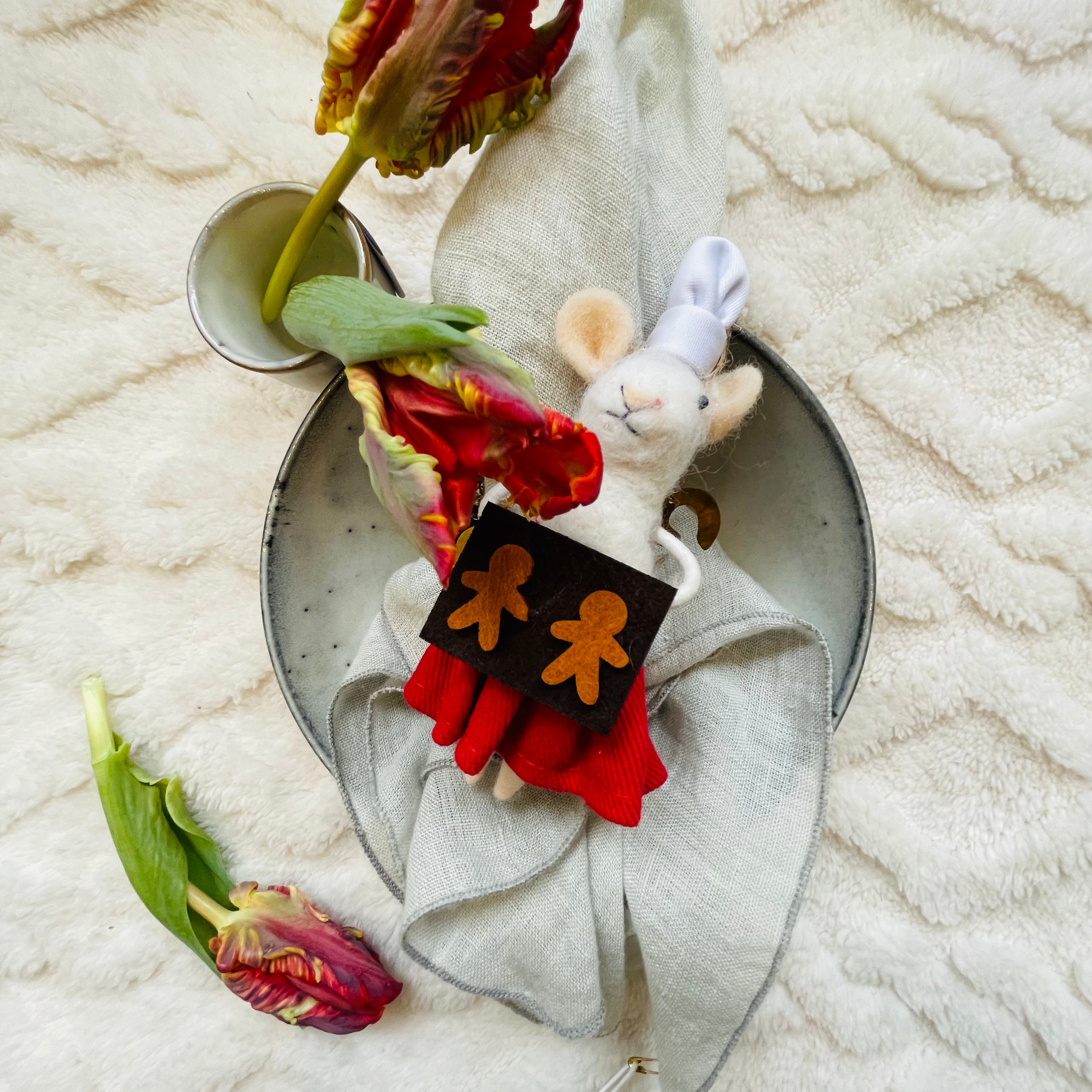 Mary Baker Mouse with Gingerbread felt Christmas decoration