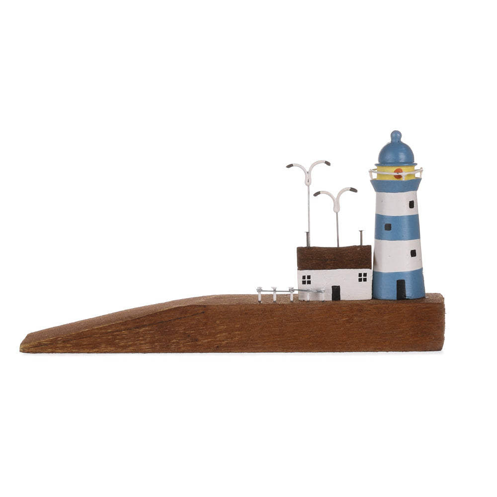 The Shoeless Joe Lighthouse Door Stop is a sturdy and decorative piece featuring a classic striped lighthouse design, bringing a coastal feel to your home while keeping doors neatly in place.