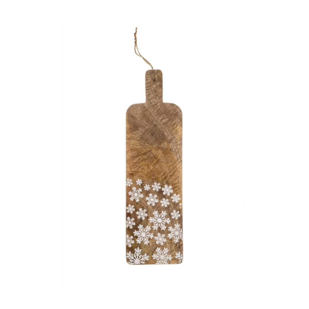 This small wooden Snowflake Serving Board features a distinctive design, ideal for serving cheeses, charcuterie, or snacks. It adds a touch of style to any occasion, especially during seasonal gatherings.