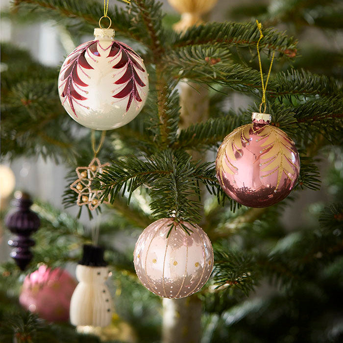 Add a soft glow to your festive décor with our Seraphim Rose Glass Baubles. This beautiful set of four features delicate shades of blush, rose, and soft pink, each finished with hand-painted detailing and shimmering gold glitter.