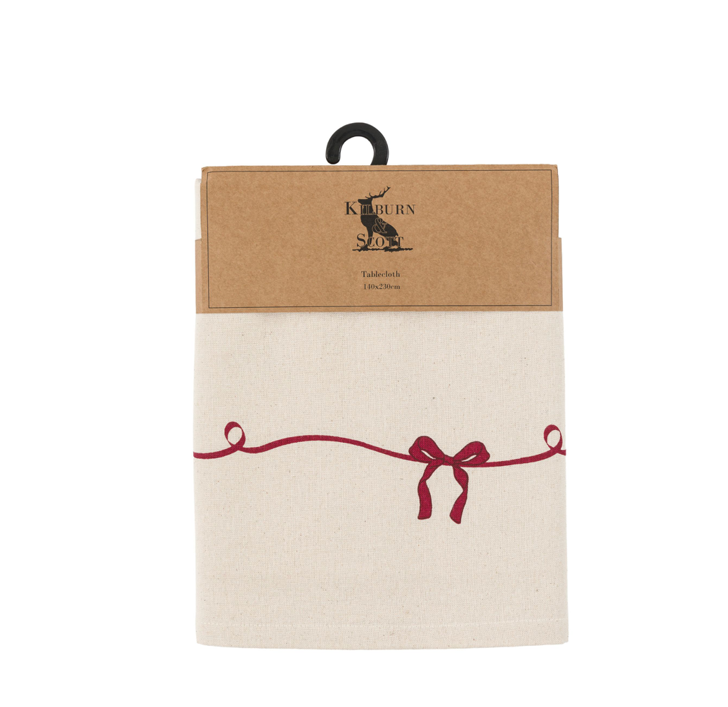 Get Christmas dinner tied up in a bow with this festive tablecloth. Featuring a traditional red ribbon and bow design along the border, it creates a charming seasonal centrepiece for your table and sets the perfect scene for Christmas dining.