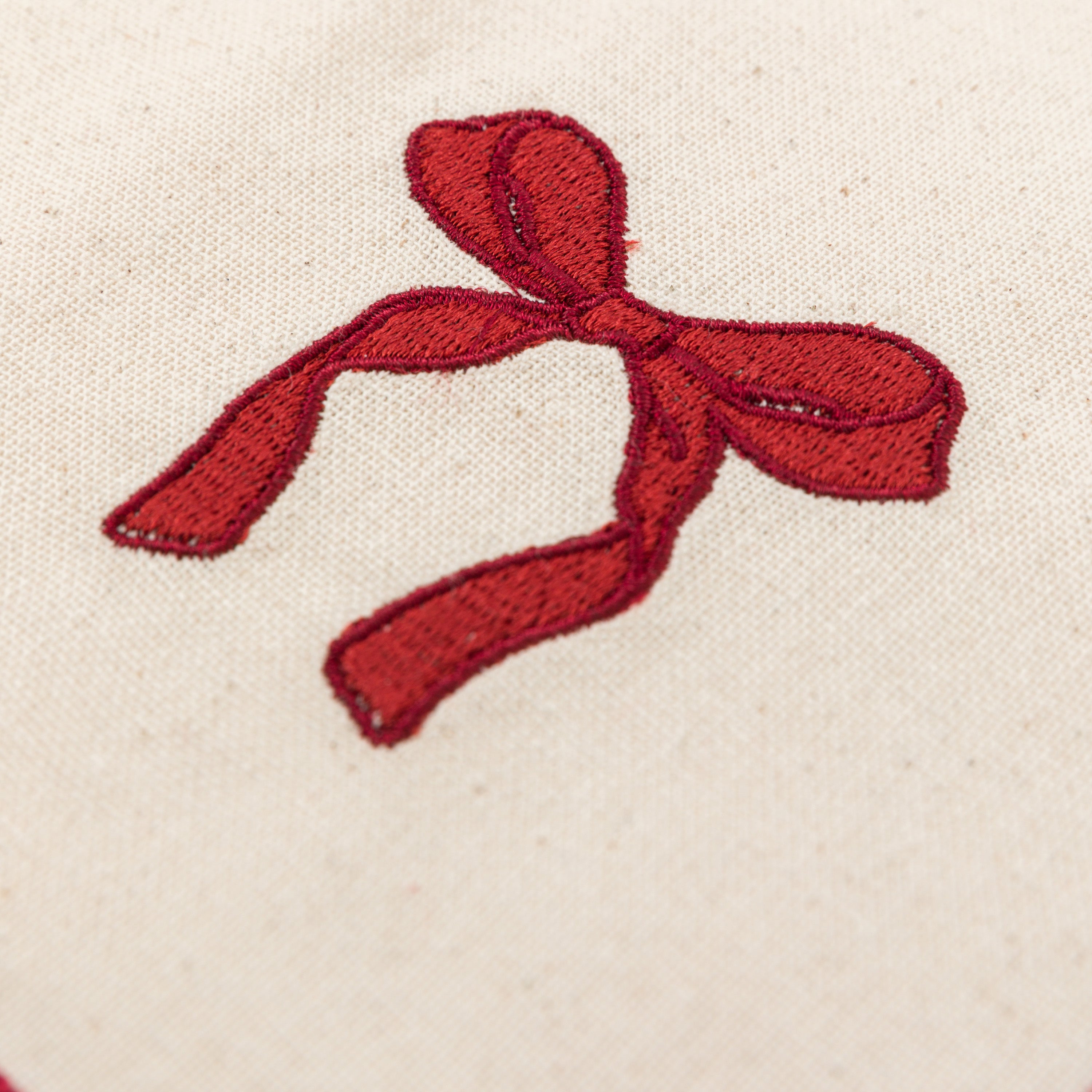 Dress your table for Christmas with this charming set of four napkins. Finished with embroidered red bows and a contrasting red trim, they bring a touch of seasonal cheer to every place setting.