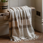 Featuring natural tones and textured woven stripes, this versatile throw effortlessly complements a variety of interior styles — adding warmth and subtle detail to any space.