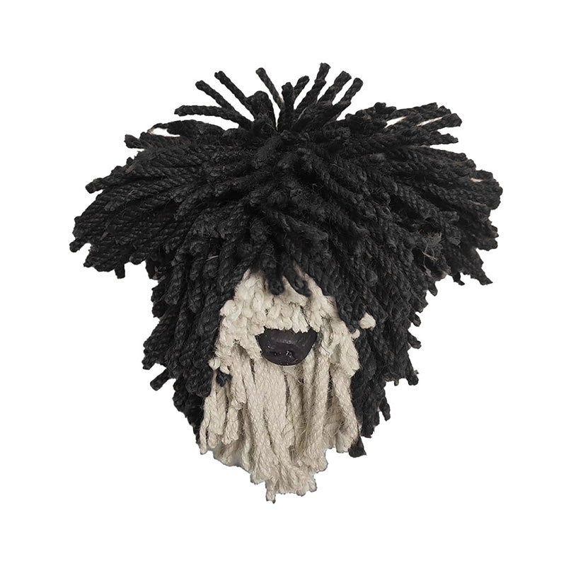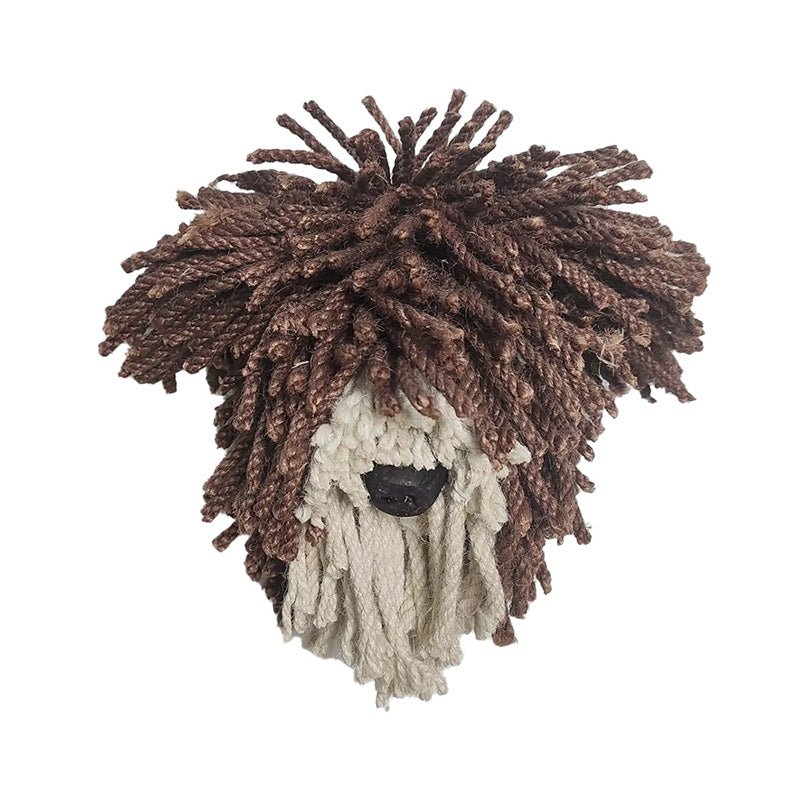 Mini decorative dog wall head featuring a textured yarn finish. Designed for wall-mounted display as a characterful accent piece.