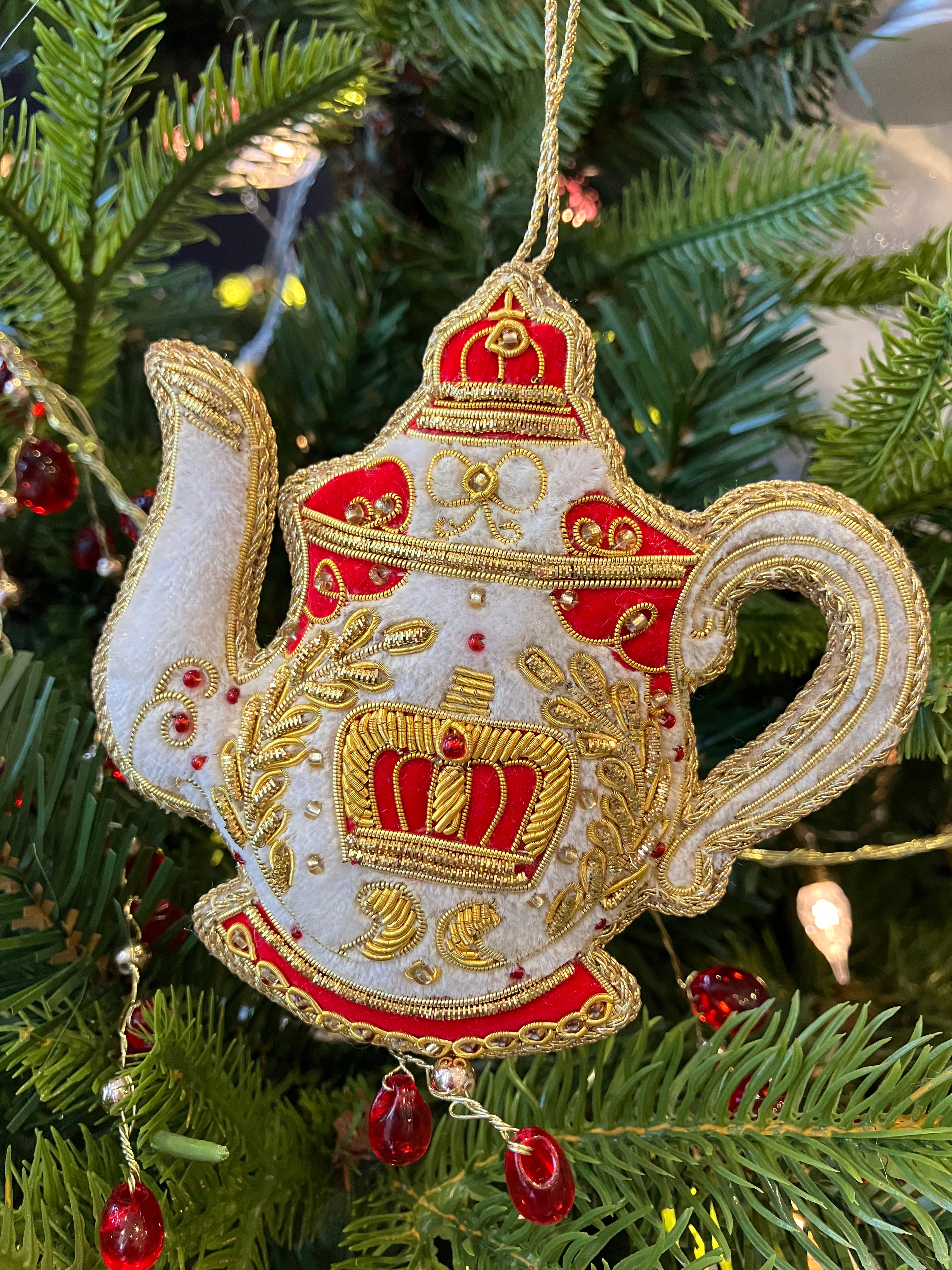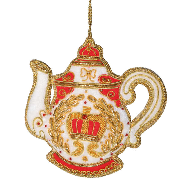 This Mixed/Gold Royal Handmade Teapot Decoration is perfect for adding a touch of Alice in Wonderland to your holiday décor. Crafted with traditional techniques, this unique piece will make a luxurious addition to your Christmas decorations.
