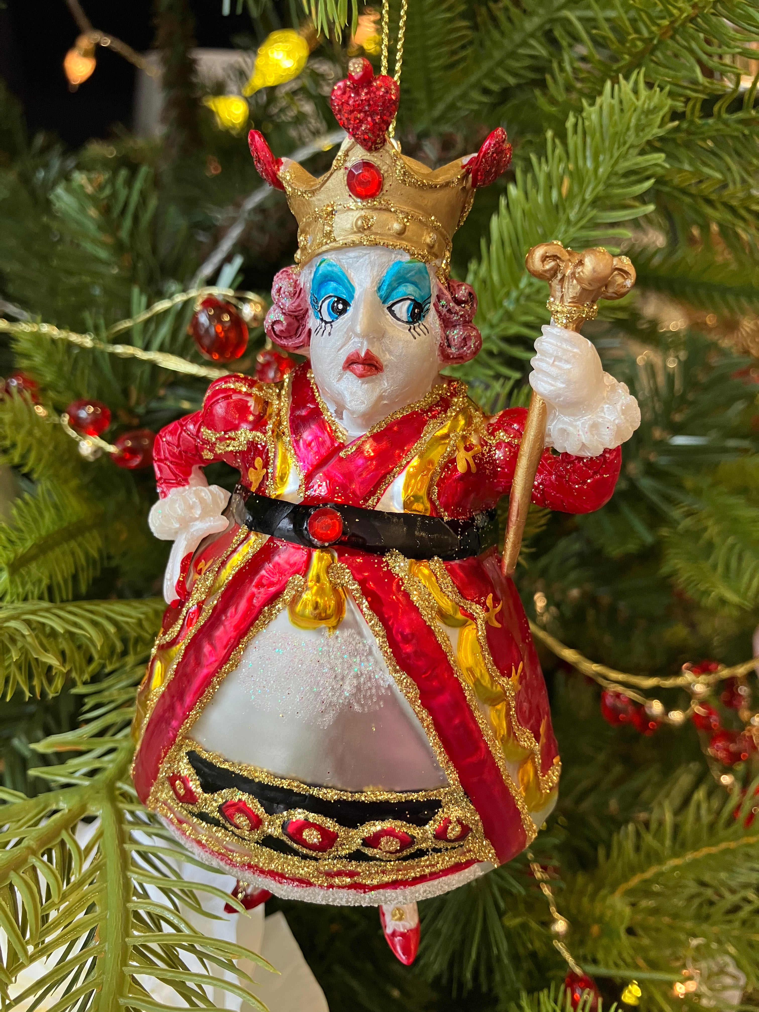 This Queen of Hearts themed decoration will add a touch of fairy-tale elegance to any tree. Crafted from quality materials, its intricate design captures the iconic Alice in Wonderland aesthetic.
