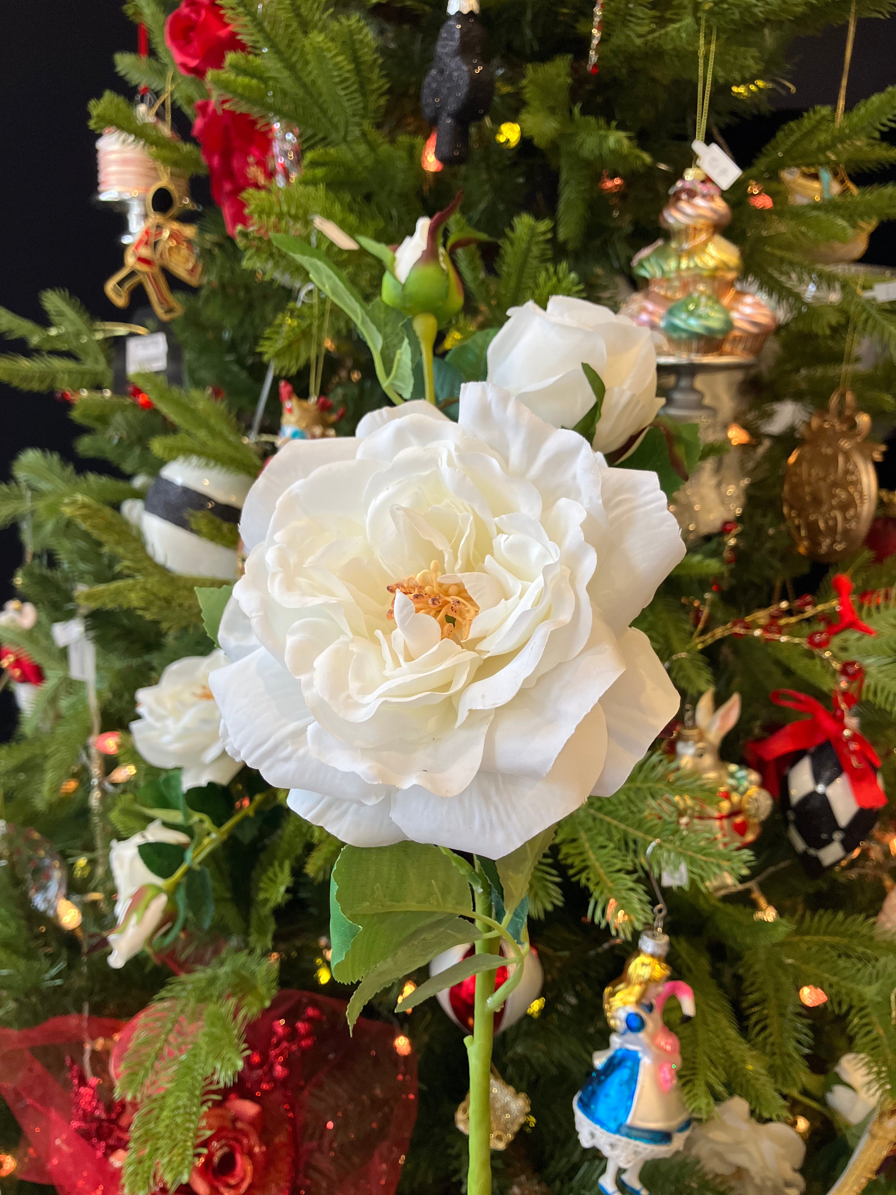 This White Rose Spray is perfect for adding a touch of Alice in Wonderland to any event! The beautiful spray features gorgeous white roses arranged in a foliage base to create an eye-catching display. Add elegance and luxury to your special celebration with this enchanting decoration!