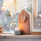 The Decorative Wooden House with Heart showcases fine craftsmanship with its charming design, featuring a heart detail that adds warmth and character. This piece serves as a tasteful accent for your home décor, bringing a subtle, cozy touch to any room throughout the year.