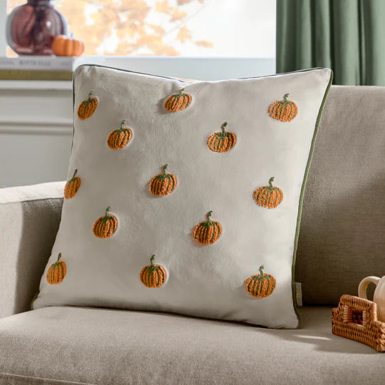 The Pumpkin Spice Cushion adds a seasonal touch to your home. Made from durable velvet, it features tufted pumpkin motifs on the front and a plain velvet back with piped trim. Soft, practical and ideal for autumn or Halloween décor.